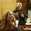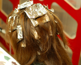 | 縮毛矯正剤を付けた部分に ストレートアイロンをかけま す。その後2剤を付け、5分 程おいてお流しします。 |
